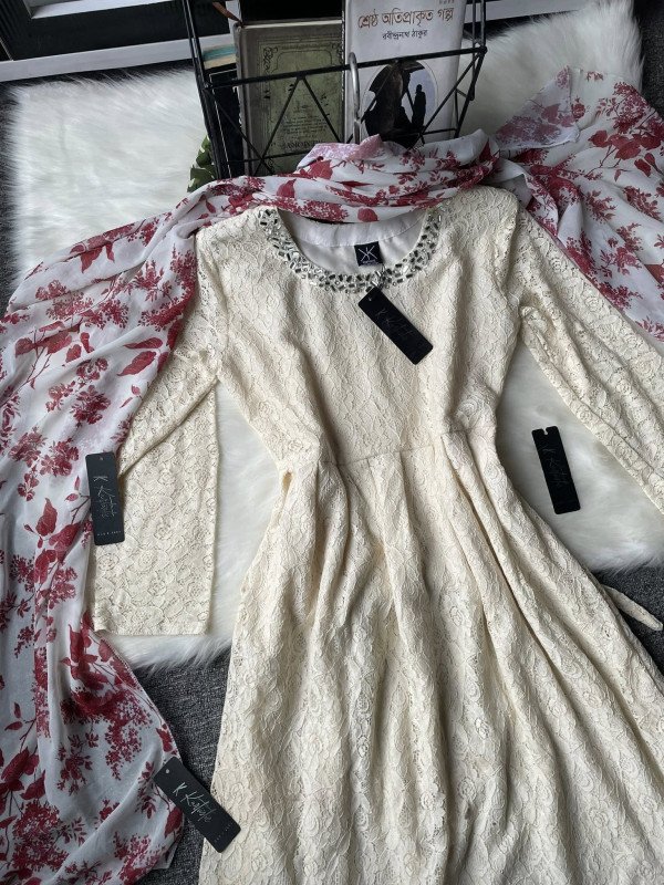 Kurtiistic new arrival - kurtiistic premium emboidery & stone work gown available now with gorgeous Maroon Dupatta.