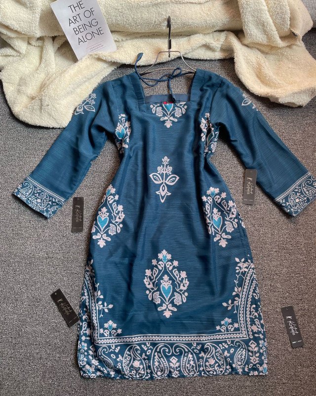 Corset-Style Back Design: A standout feature that enhances the fit, giving a structured and flattering shape to the kurti.