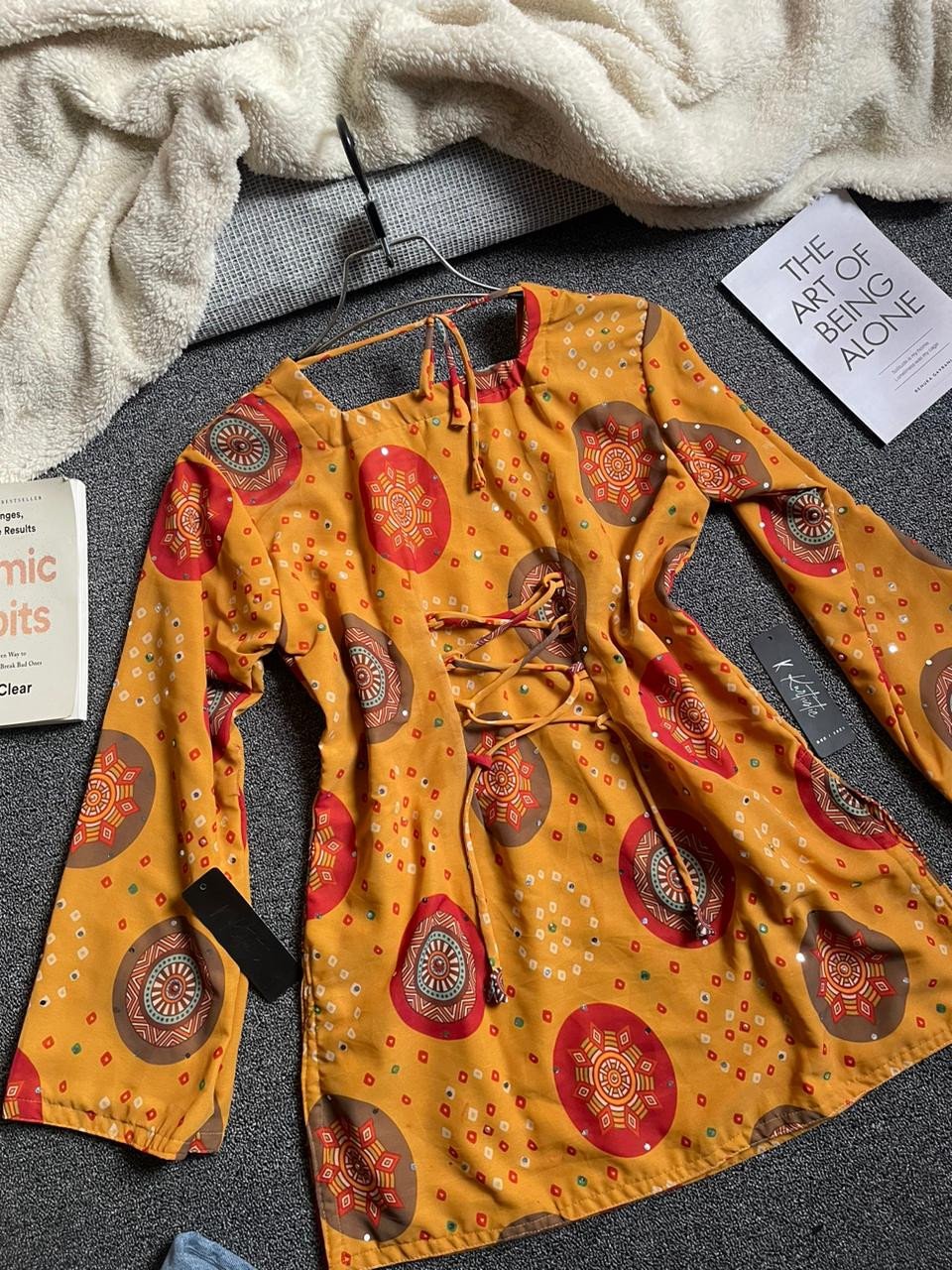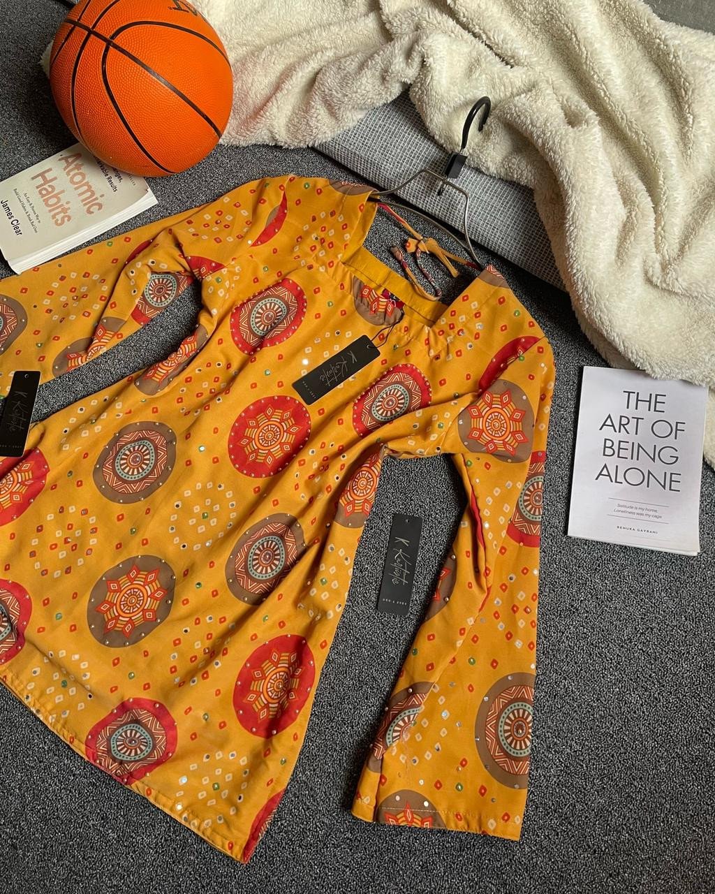 This mustard stone work short kurti and jeans set represents:
