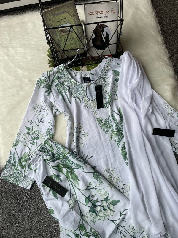 kurtiistic VANGCHUR fabric with digital printed and stone work three pieces ( green floral )