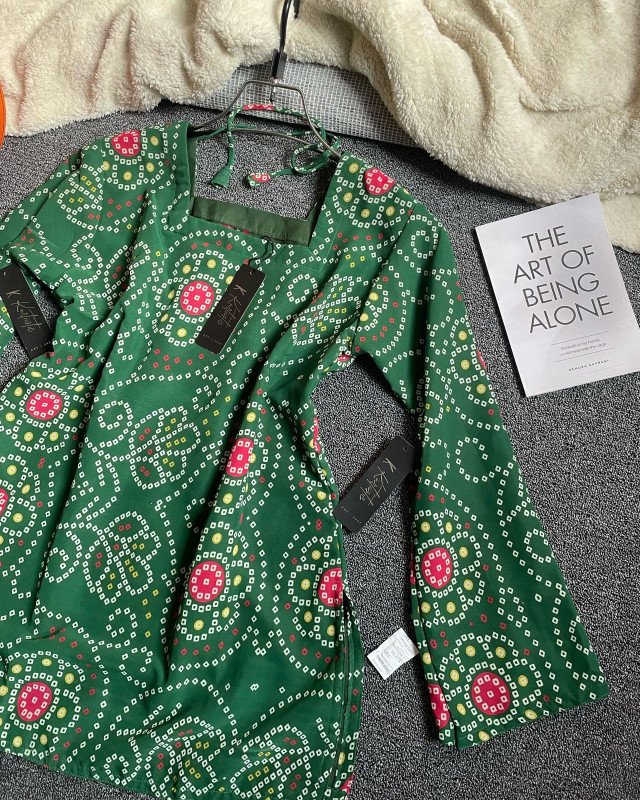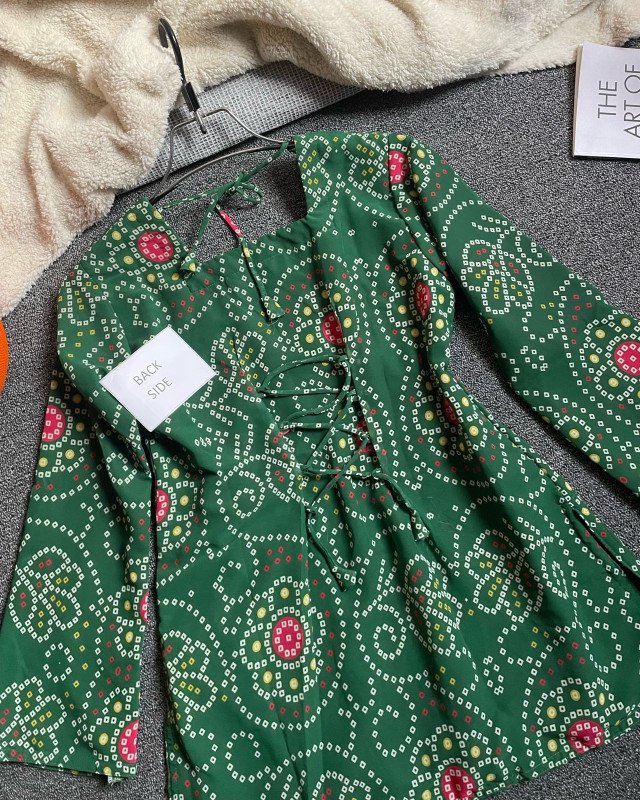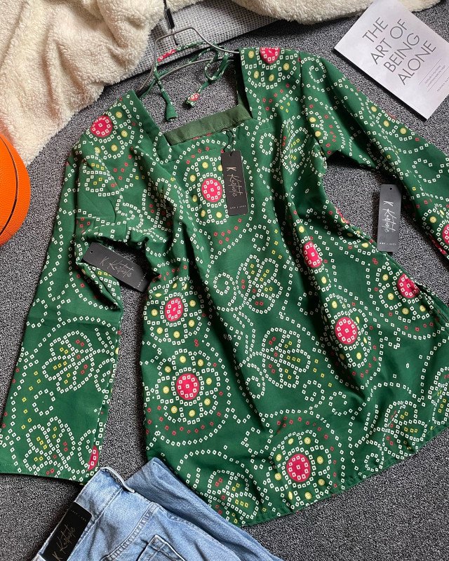 Deep Bottle Green - Vatik inspired prints | kurtiistic new vatik printed ( digital ) Short kurti and jeans| Corset Back kurti