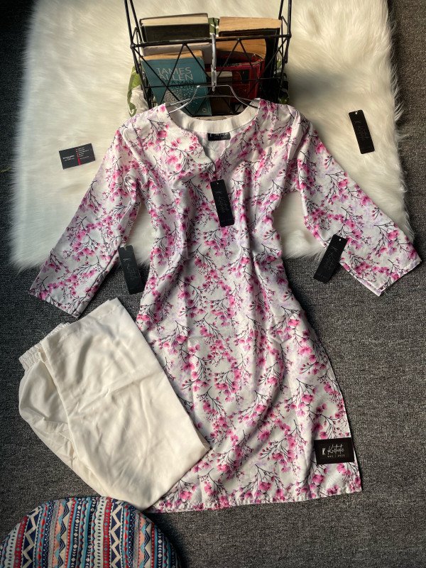 Kurttistic Digital printed Co-ords ( floral pink )